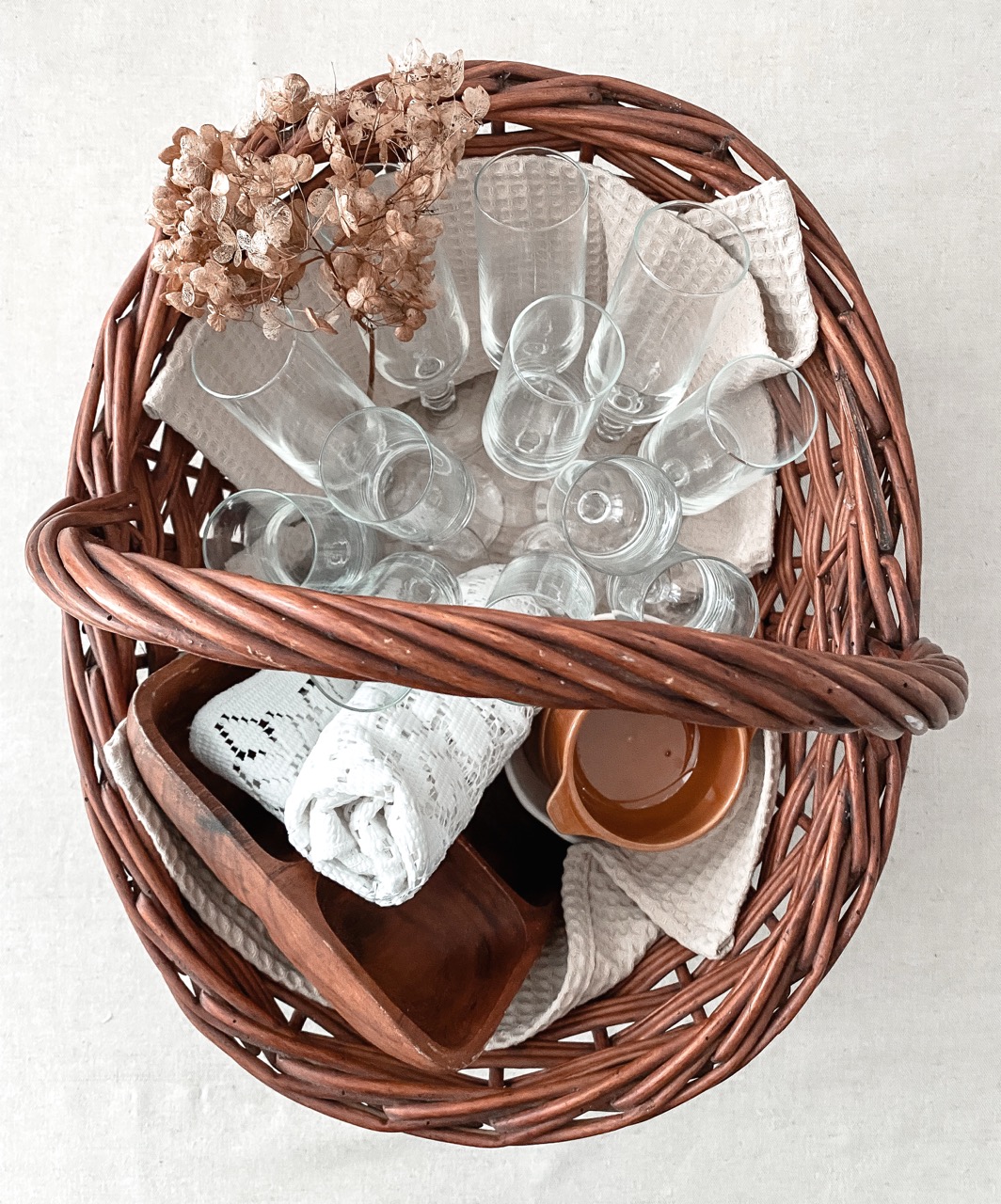 Materiality played a central role within the visual language. Linen, rattan, porcelain, glass and silver were given space to speak through a minimal, clean design approach. Generous white space and a restrained colour palette created a calm backdrop for the products. This allowed each object to stand on its own, highlighting beauty found in simplicity and reuse.